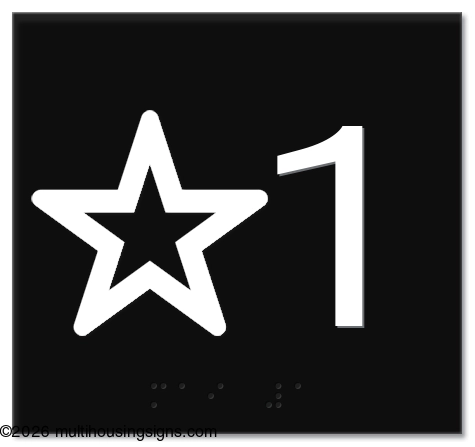 , raised characters, including the star, shall be white on a black background. The Braille translation for the star shall be "MAIN."