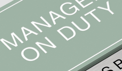 manager on duty sign w/ nameplate