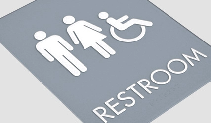 restroom sign w/ unisex symbols