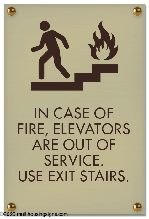 Post at an elevator to instruct people to use the stairs in the event of an emergency, not the elevator.