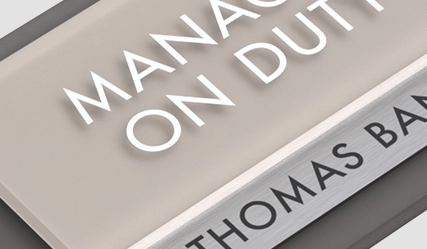 manager on duty sign w/ nameplate