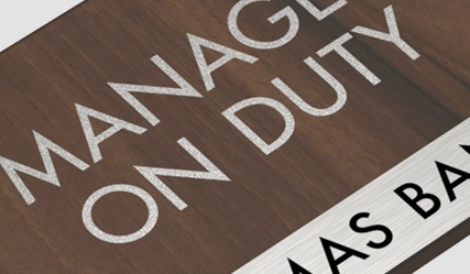 manager on duty sign w/ nameplate