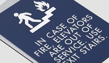 in case of fire, elevators are out of service... w/ no braille