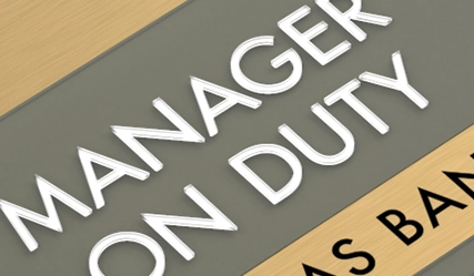 manager on duty sign w/ nameplate