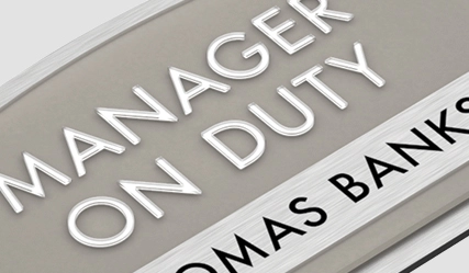 manager on duty sign w/ nameplate