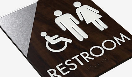 restroom sign w/unisex & dynamic isa symbols