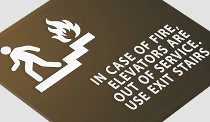 in case of fire, elevators are out of service - no braille