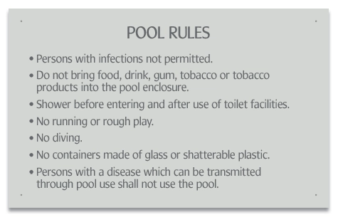 Mobile County, Alabama Pool Rules Sign